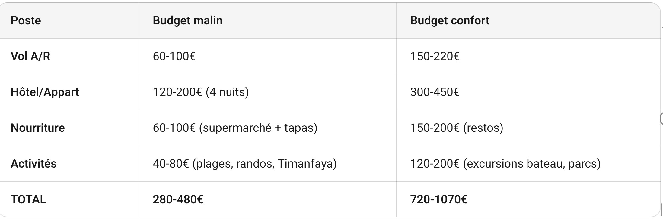 3️⃣ Budget moyen (5 jours/4 nuits)